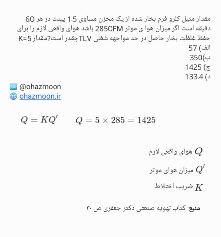 سوال تخصصی بهداشت حرفه ای ۸