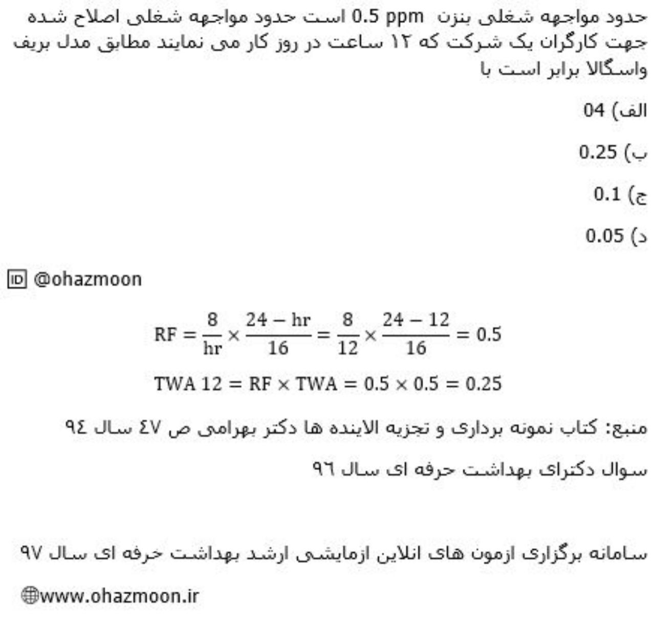 | سوال تخصصی بهداشت حرفه ای ۹ | masoomi | 0 | 1,703 |