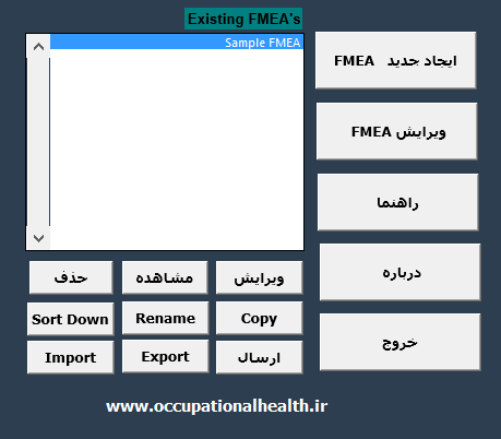 این برنامه یک ابزار جامع برای ارزیابی ریسکهای محیط کار بر اساس روش FMEA است. در ادامه، نحوه استفاده از این برنامه توضیح داده شده است